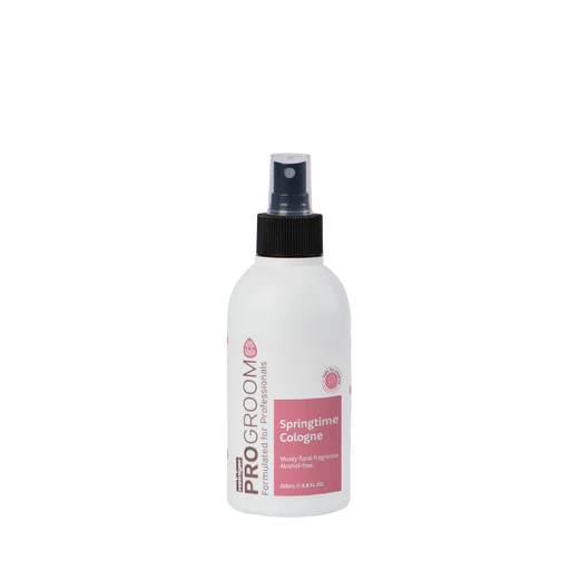 ProGroom’s Springtime dog cologne is long lasting with soft floral notes that keep your dog smelling fresh and odour free for days.